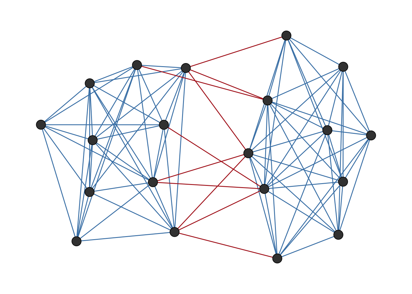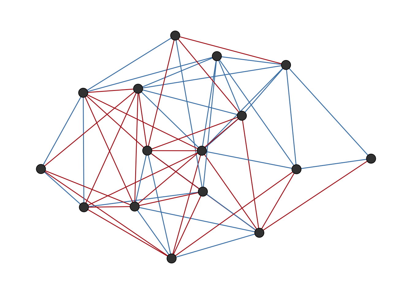 Structural balance theory originates in the social psychology of Fritz Heider (1946) and was formalised for graphs by Cartwright and Harary (1956). The core idea is intuitive: consider three people. If Alice and Bob are friends, and Bob and Carol are friends, we expect Alice and Carol to also be friends: “the friend of my friend is my friend.” Similarly, if Alice and Bob are enemies and Bob and Carol are enemies, we expect Alice and Carol to be friends: “the enemy of my enemy is my friend.” These configurations are balanced. A triangle where all three pairs are enemies, or where two pairs are friends but one pair are enemies, feels unstable and is considered unbalanced.