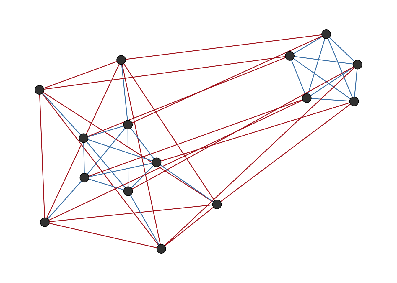 A network is balanced if it can be partitioned into two groups such that all ties within groups are positive and all ties between groups are negative.