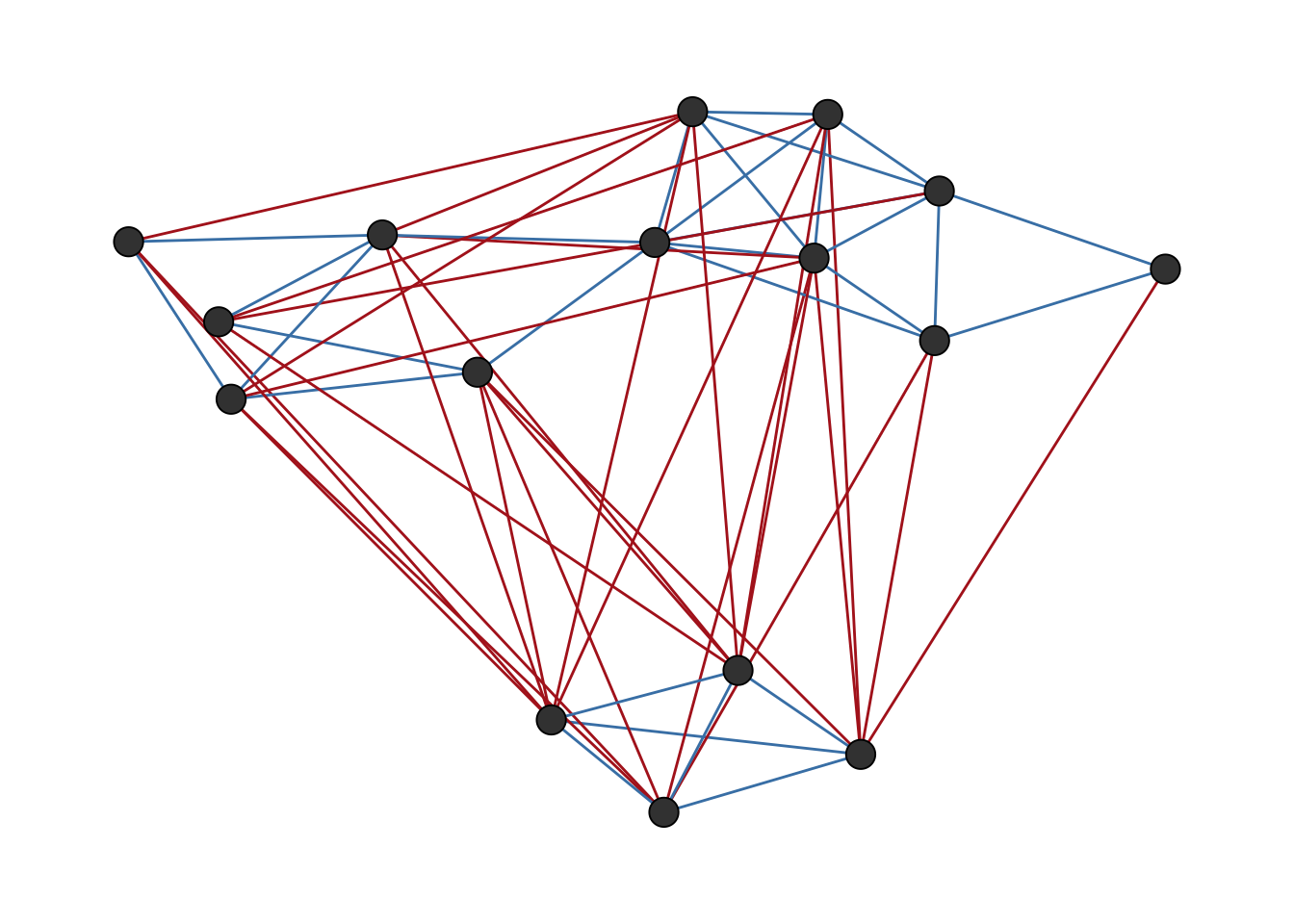 The parameter weights can be used to artificially “pull” nodes connected with negative ties apart, which can help to visually separate potential groups of positive ties as shown in Figure 7.2.