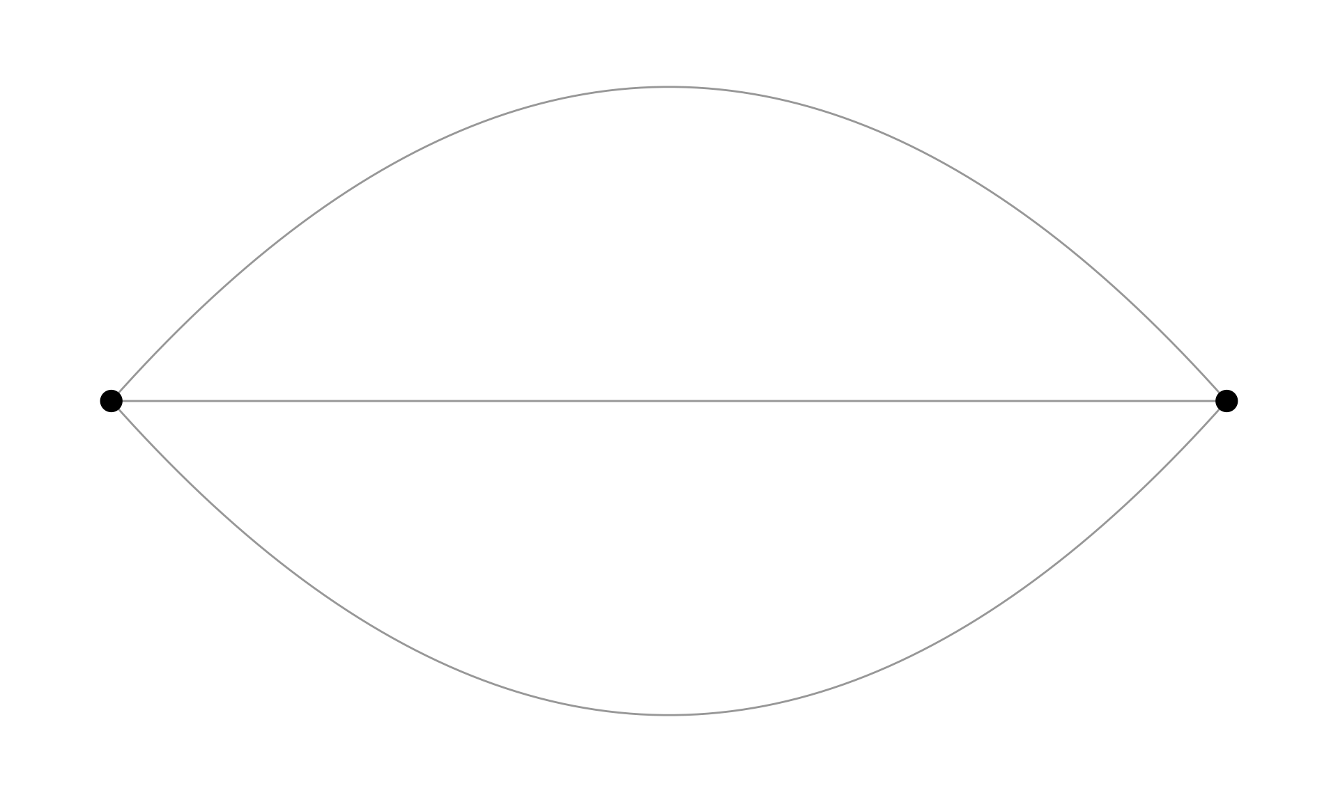 )You can do a lot of fancy things with these geoms but for a standard network plot, you should almost always stick with geom_edge_link0 since it simply draws a straight line between the endpoints. Some tools draw curved edges by default. While this may add some artistic value, it also reduces readability. It is best to always go with straight lines. If a network has multiple edges between two nodes, one can switch to geom_edge_parallel() (see Figure 10.3).