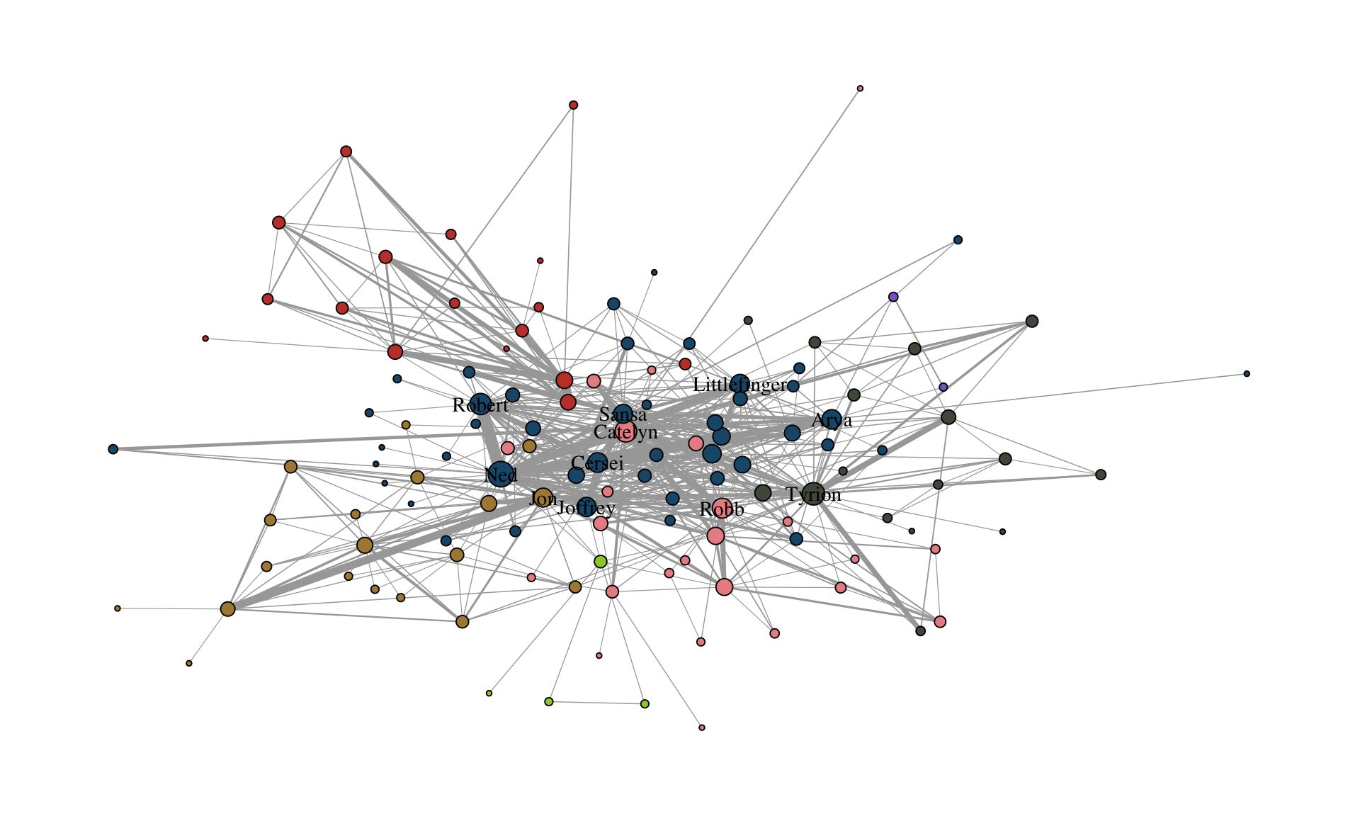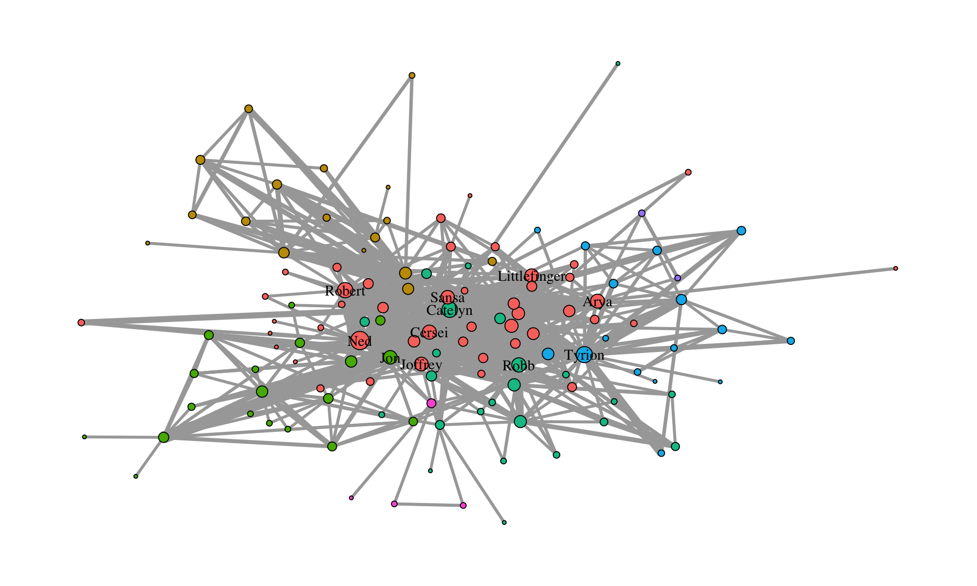 As a running example in this chapter, we use the network of character interactions in the first season of Game of Thrones (GoT). This dataset is included in the networkdata package.